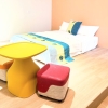 ☀ 個性休憩區:房內設有 獨特的黃橙撞色小桌椅,適合靜坐小酌、閱讀,增添專屬的放鬆時光。